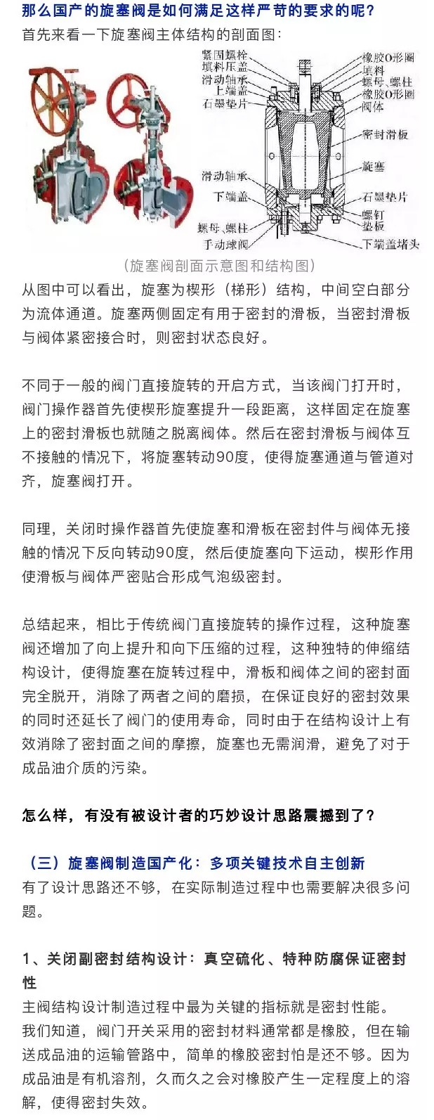 中国自主研制的双关双断旋塞阀拥有自主知识产权的核心技术,达到国际先进水平,经过了市场的考验多次成功中标,成功打破国外产品的长期垄断,有望在今后的市场竞争中逐步替代原有进口阀门,确保国家能源供应安全。