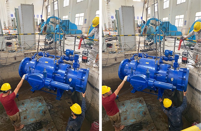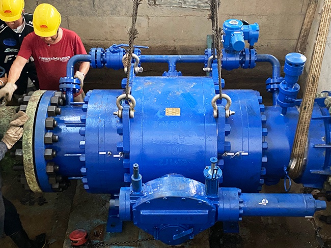 四川天阀公司派人实地勘验后,制定了初步技改方案。进水球阀使用带上下游密封环的水电专用球阀。2021年5月,天阀公司将制作完成的球阀运送到电站现场,适逢电站丰水期,不利于停水安装。2021年底,新冠病毒爆发,地处云南边陲的大寨河成为了疫情防控重点地区,深能源与天阀公司与相关部门沟通,多方努力都未达成安装时间共识。